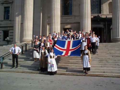 Sunnukór outside First Lutheran Church |