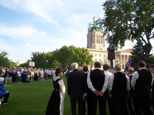 Performing on the grounds of the Manitoba Legislature, beside the statue of Jón Sigurdsson |