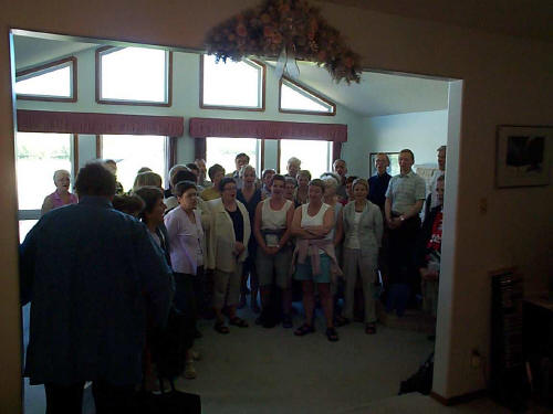 After a fantastic tour at Einar and Rosalind Vigfusson´s the choir sang a couple songs of thank you. |