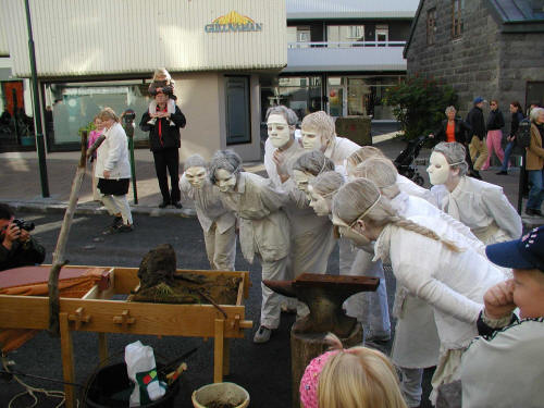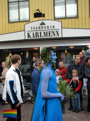"Blue Boy" the sign above him says "Icelandic Men" |